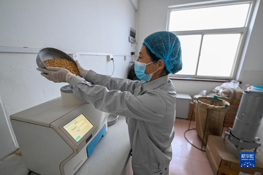 10月12日,在中央儲備糧天津東麗直屬庫有限公司大港分公司,質(zhì)檢員操作儀器檢測糧食水分含量。
