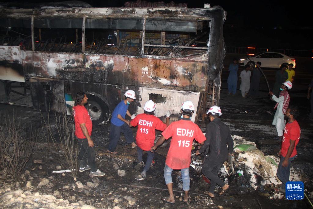 巴基斯坦南部一客車(chē)起火致18死28傷