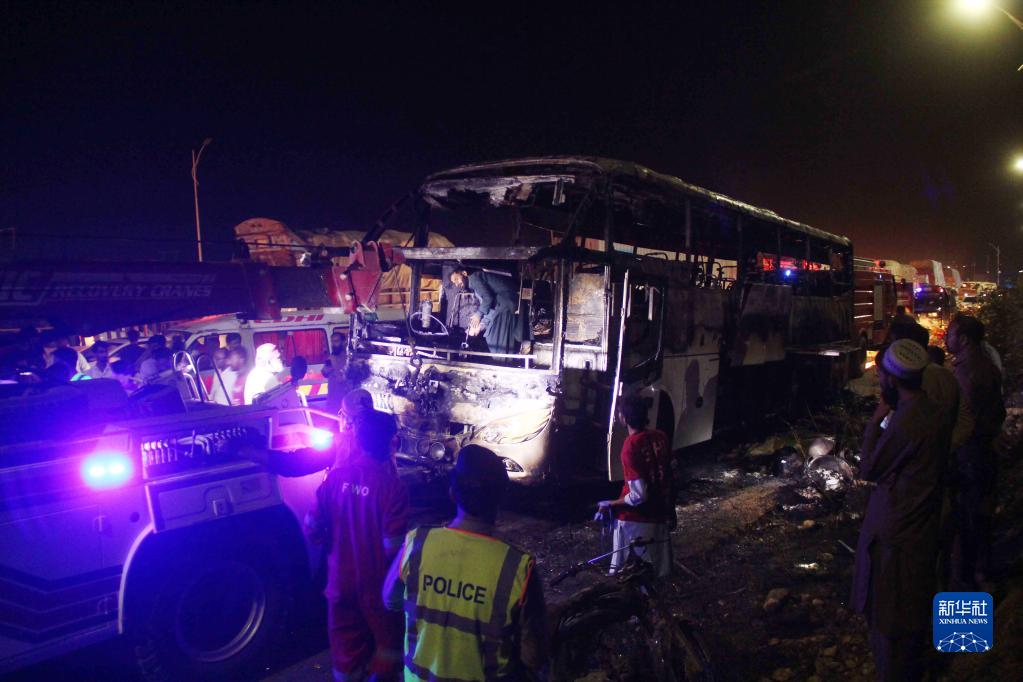 巴基斯坦南部一客車(chē)起火致18死28傷