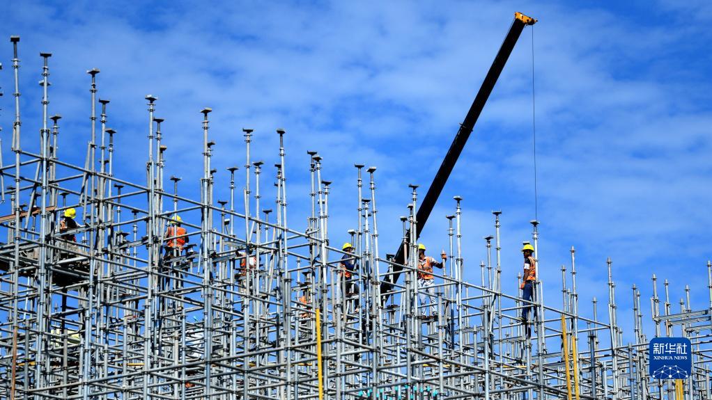 近期,在南玉(南寧至玉林)高鐵項目玉林北站站房施工現場(chǎng),中鐵十一局玉林北站項目經(jīng)理部在保證員工健康安全的同時(shí),確保工程項目進(jìn)度。