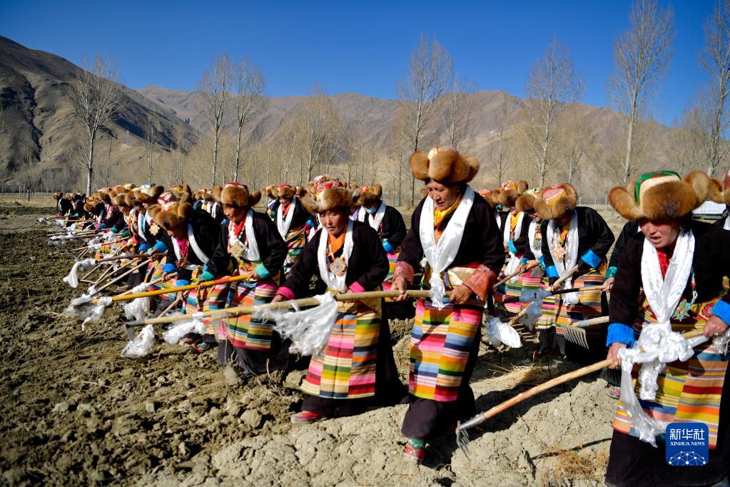 西藏山南市乃東區門(mén)中崗社區春耕儀式現場(chǎng)(2022年3月16日攝)。