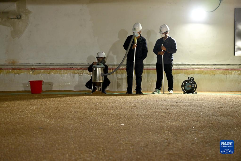 10月13日,在中央儲備糧合肥直屬庫有限公司本部,工作人員對倉房?jì)鹊男←溸M(jìn)行取樣檢測。