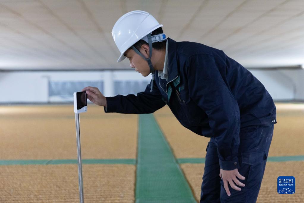 10月14日,在中央儲備糧上海直屬庫平房倉,趙子龍查看糧倉內溫度濕度。