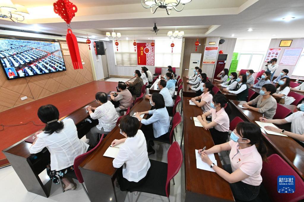 10月16日,黨員在福州市鼓樓區軍門(mén)社區收看中國共產(chǎn)黨第二十次全國代表大會(huì )開(kāi)幕會(huì )。
