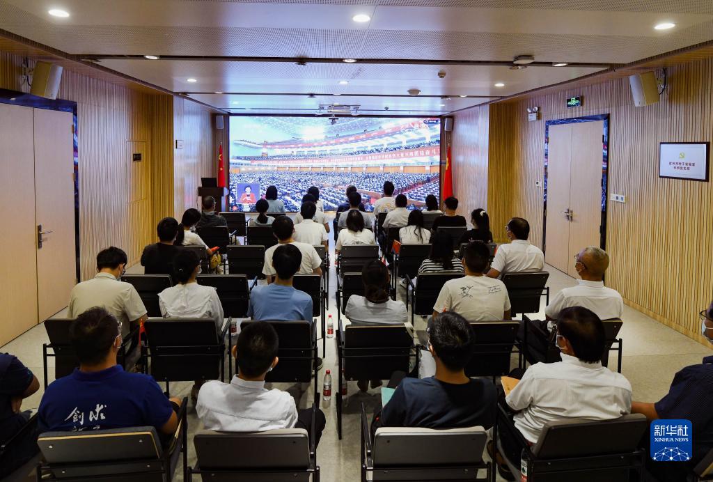 10月16日,在位于海南省三亞市崖州灣科技城的崖州灣種子實(shí)驗室,科研工作者收看中國共產(chǎn)黨第二十次全國代表大會(huì )開(kāi)幕會(huì )。