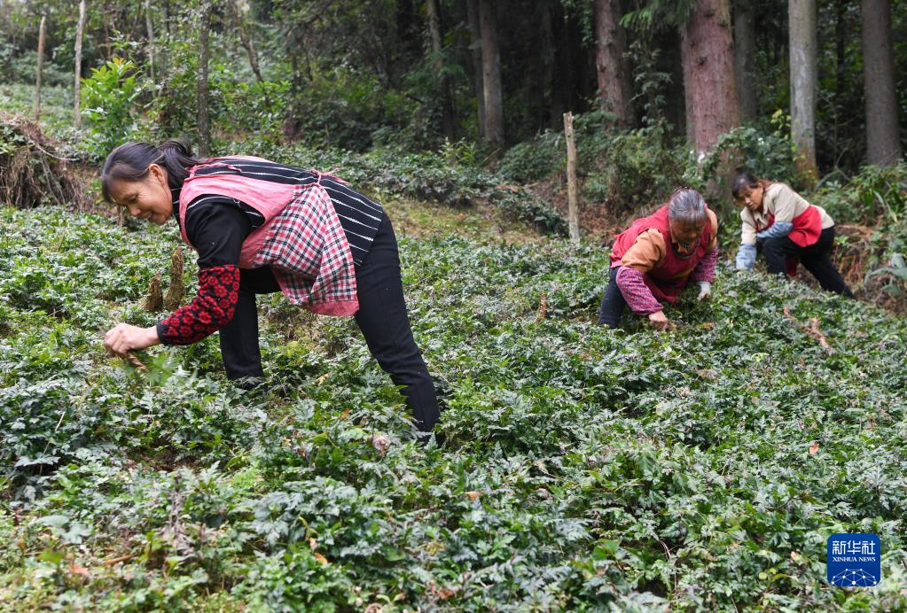 10月14日,山王坪鎮廟壩村村民在黃連種植地里勞作。