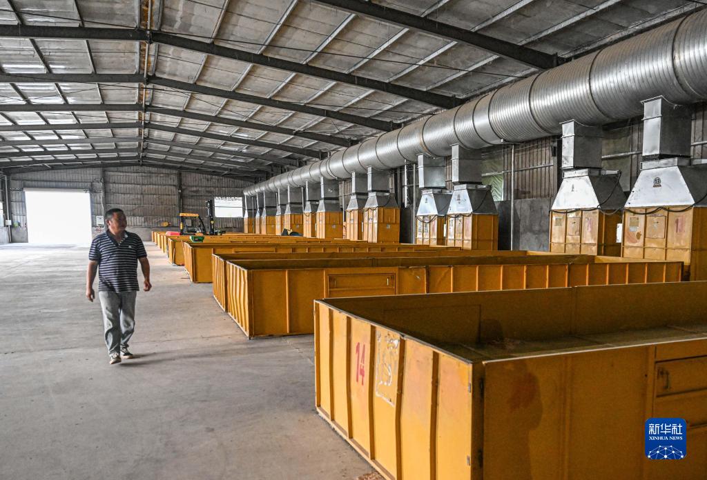 10月15日,工人在位于海南省東方市的海南農樂(lè )南繁科技有限公司烘干廠(chǎng)內巡視。新華社記者 蒲曉旭 攝