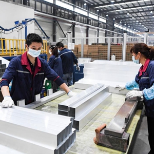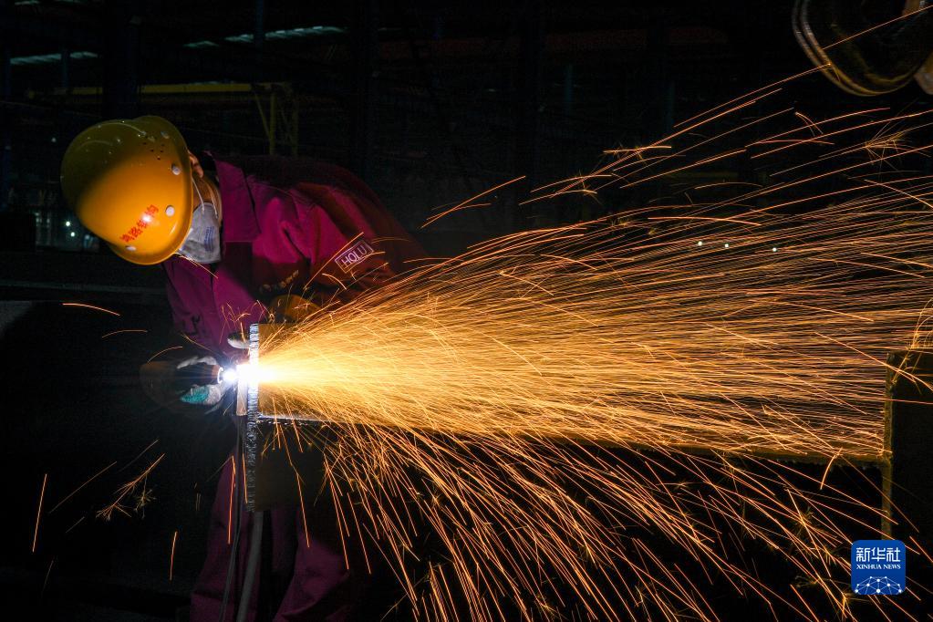 10月13日,在位于重慶市南川區的重慶鴻路鋼結構有限公司,工人在生產(chǎn)車(chē)間作業(yè)。