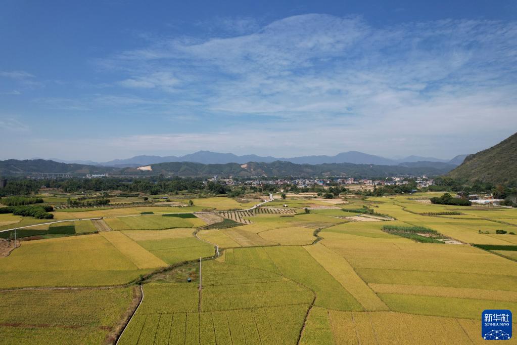廣西柳州市融安縣浮石鎮長(cháng)龍村的秋季田園風(fēng)光(無(wú)人機照片,10月19日攝)。