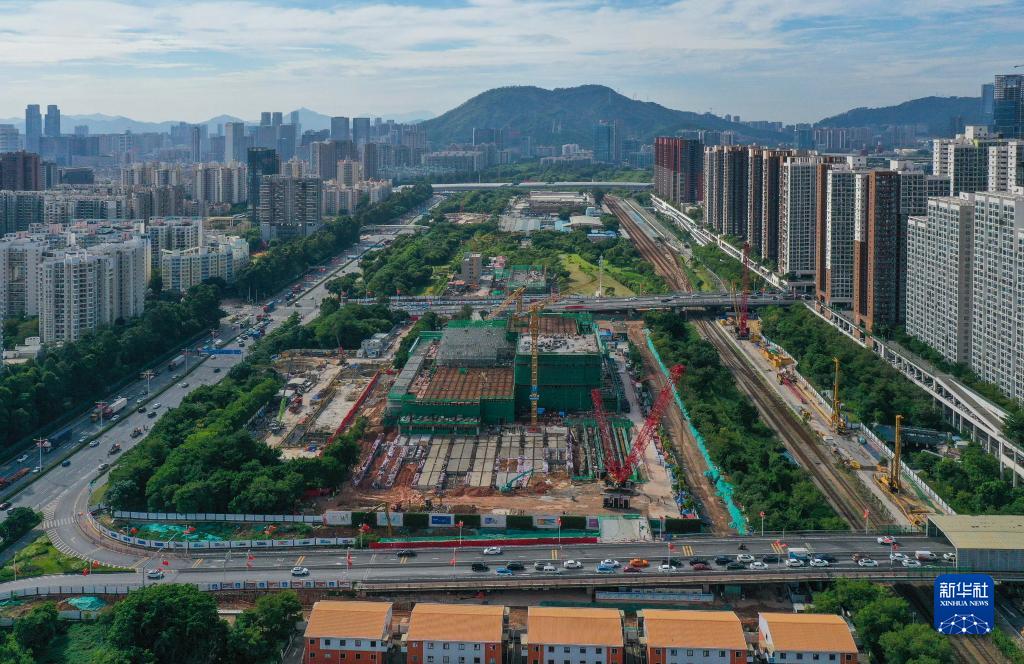 由中鐵上海局承建的深圳前海桂灣街坊商業(yè)配套項目交通改善工程進(jìn)展順利(10月19日攝,無(wú)人機照片)。