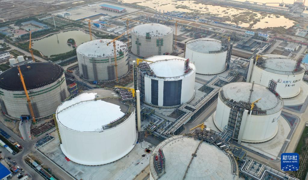 10月19日拍攝的建設中的中石化天津液化天然氣(LNG)接收站(無(wú)人機照片)。