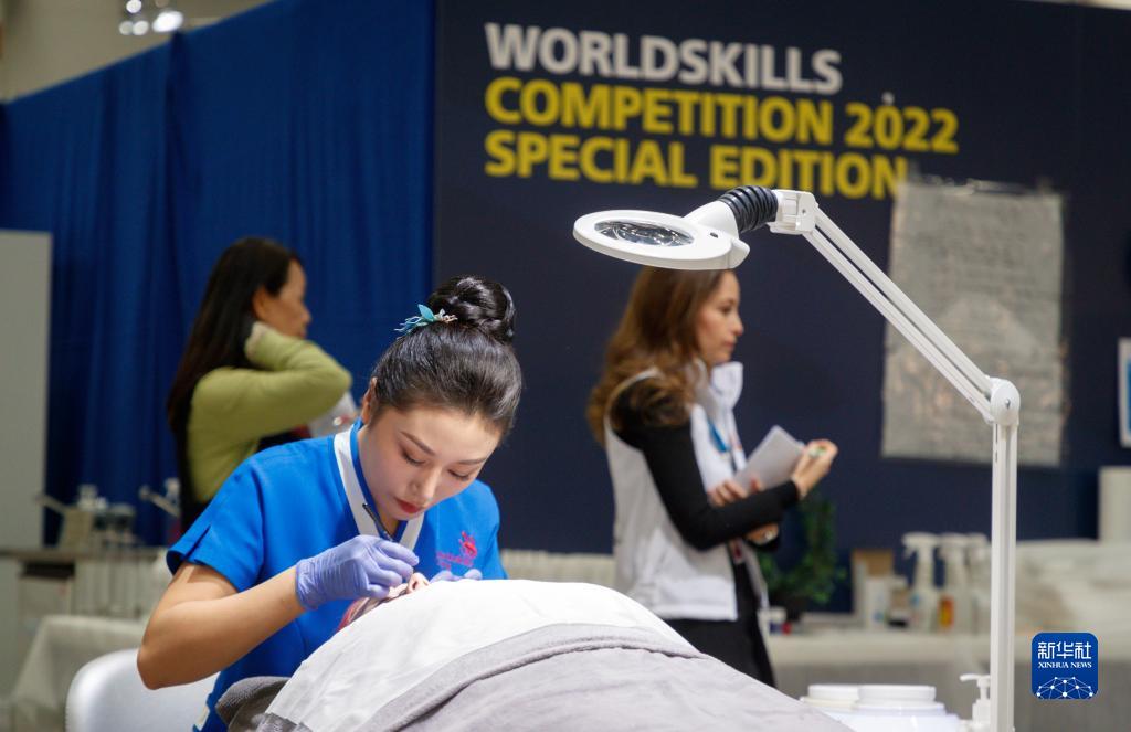 10月20日,重慶城市管理職業(yè)學(xué)院王珮在芬蘭首都赫爾辛基參加2022年世界技能大賽特別賽芬蘭賽區比賽美容項目。新華社發(fā)(卡勒·帕爾基寧攝)