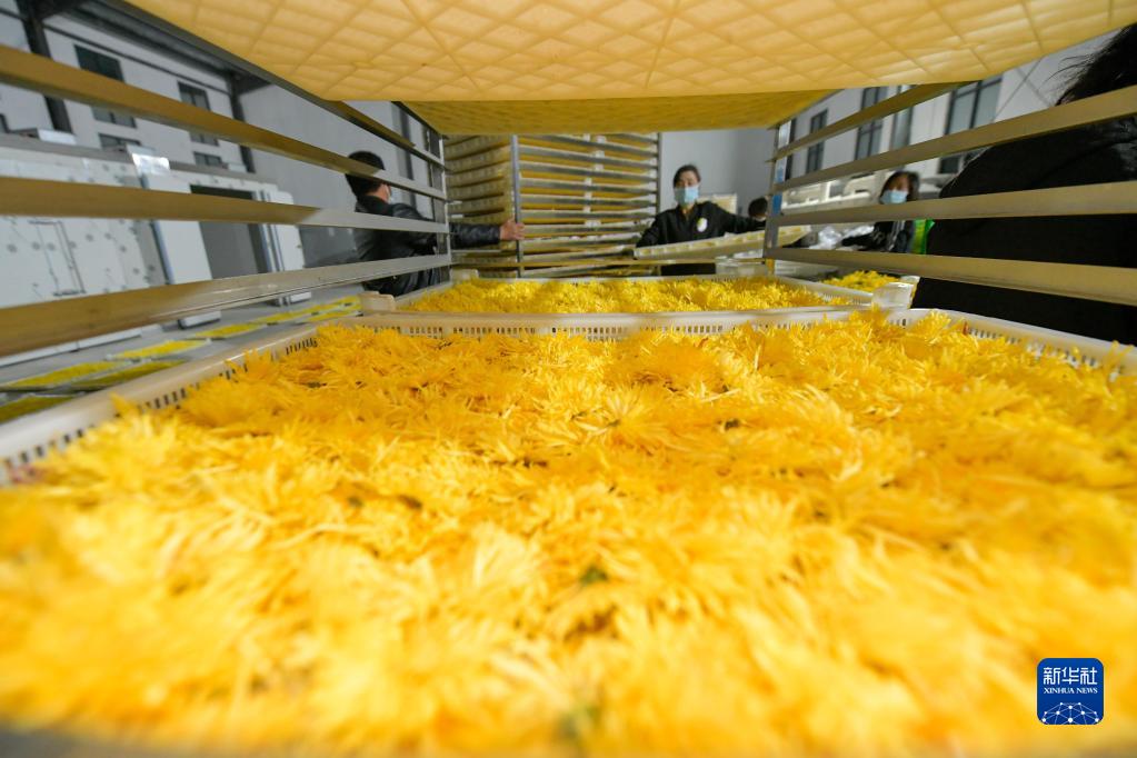 金秋時(shí)節,貴州省黔南布依族苗族自治州貴定縣云霧鎮種植的1000余畝菊花陸續進(jìn)入采摘期,當地村民忙著(zhù)采摘、分揀、烘干菊花,供應市場(chǎng)。