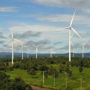 這是10月4日在泰國猜也蓬府拍攝的由中國金風(fēng)科技提供的風(fēng)力發(fā)電機。