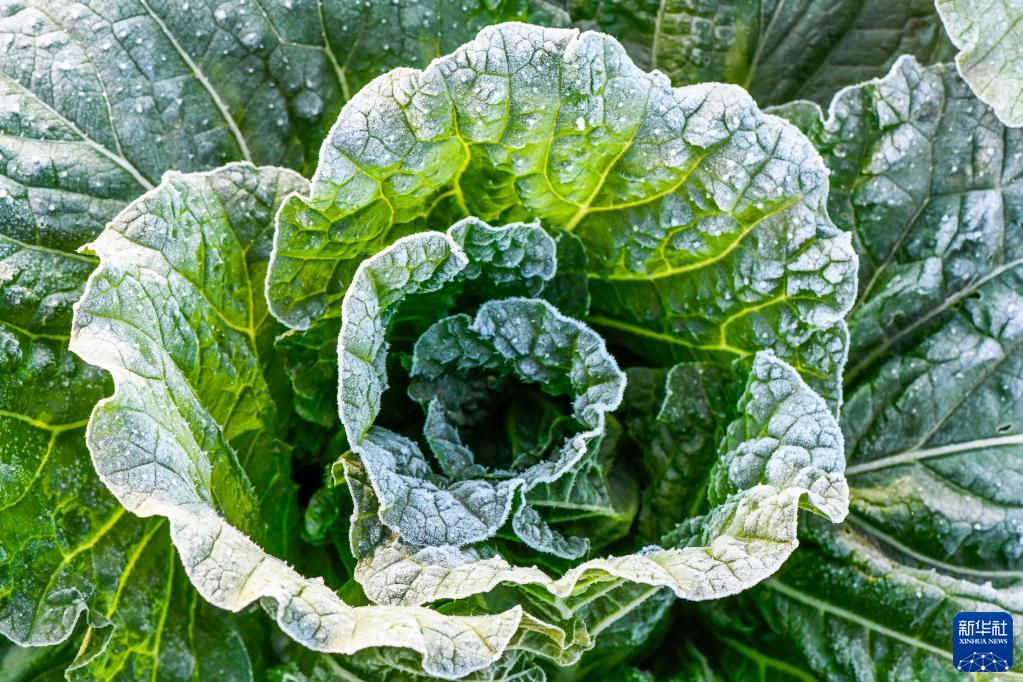 10月17日,河北省玉田縣亮甲店鎮田間的白菜結霜。