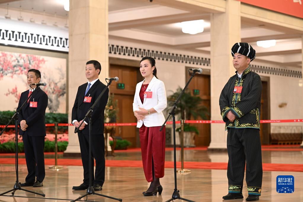 這是閉幕會(huì )后,周海江、李國璋、張燕、施金通代表(自左至右)接受采訪(fǎng)。