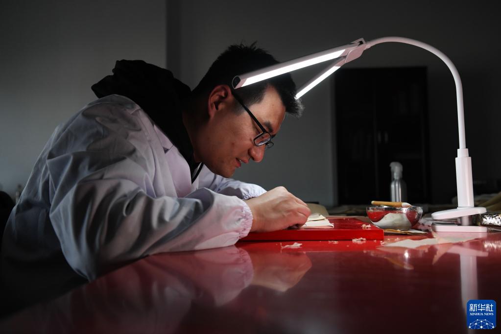 10月20日,在安徽中醫藥大學(xué)圖書(shū)館古籍部,古籍修復師茆可人在進(jìn)行古籍修復。