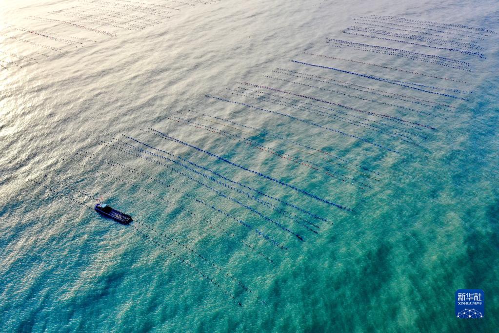 在福建省霞浦縣三沙鎮海域,生蠔采收船在進(jìn)行采收作業(yè)(10月22日攝,無(wú)人機照片)。