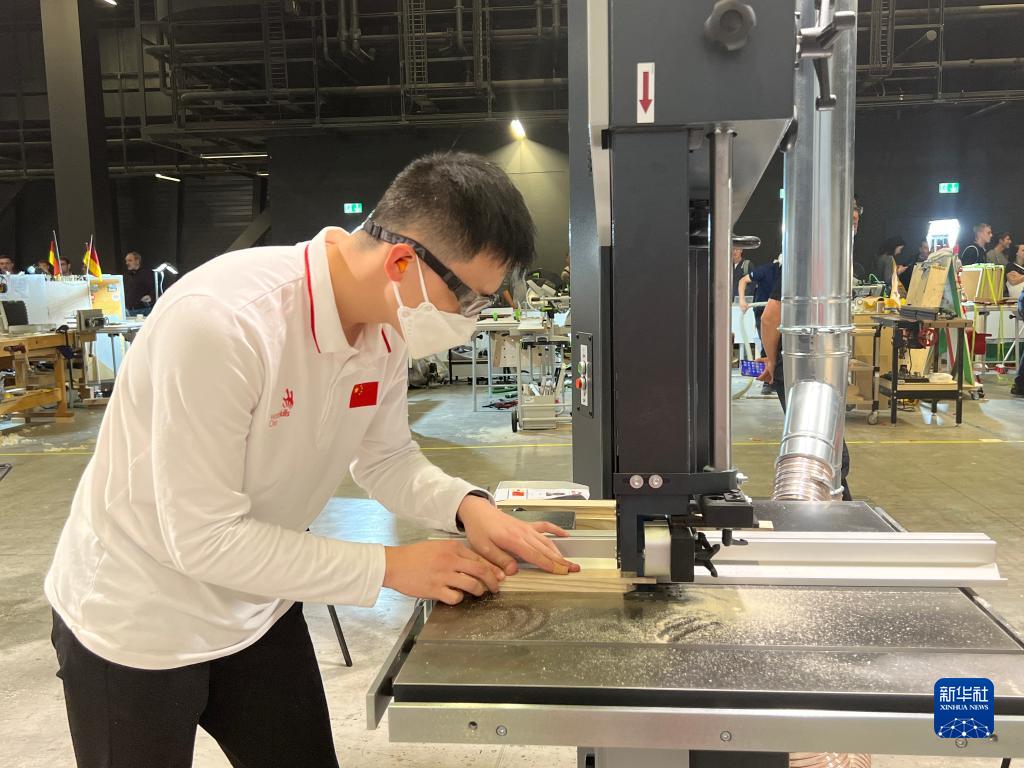10月13日,在瑞士巴塞爾,中國選手李德鑫在2022年世界技能大賽特別賽家具制作項目中比賽(手機拍攝)。