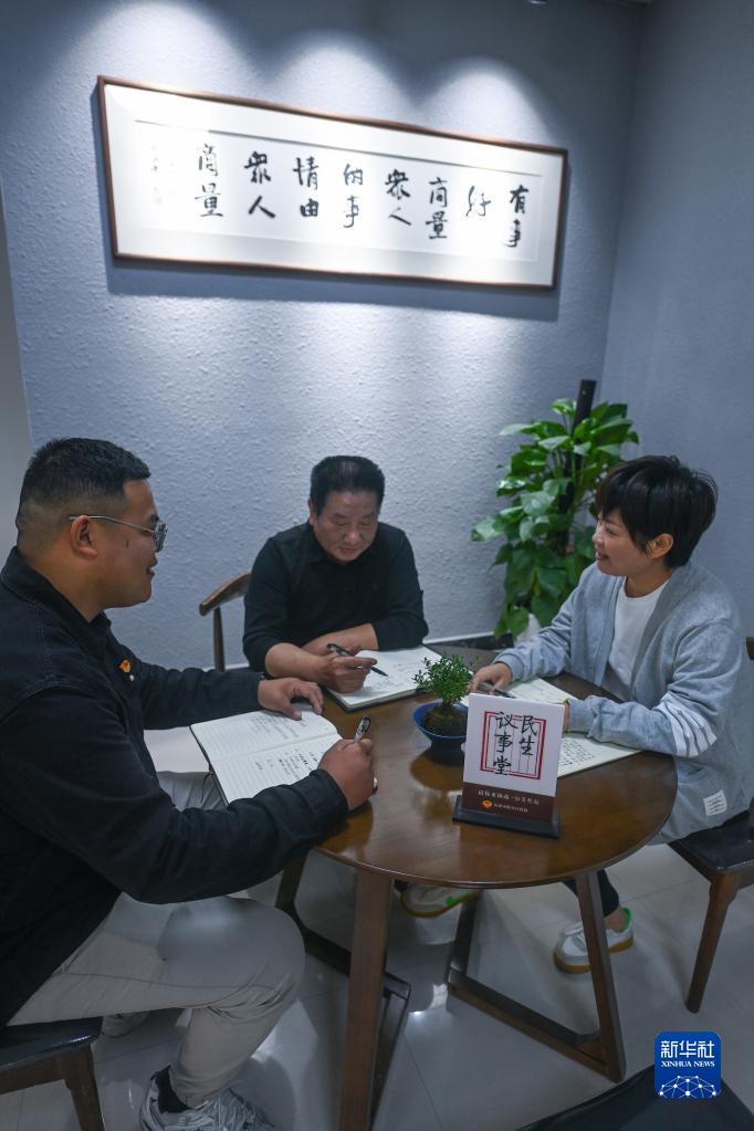 10月25日,杭州市臨安區玲瓏街道夏禹橋村民生議事堂的成員們在進(jìn)行討論協(xié)商。