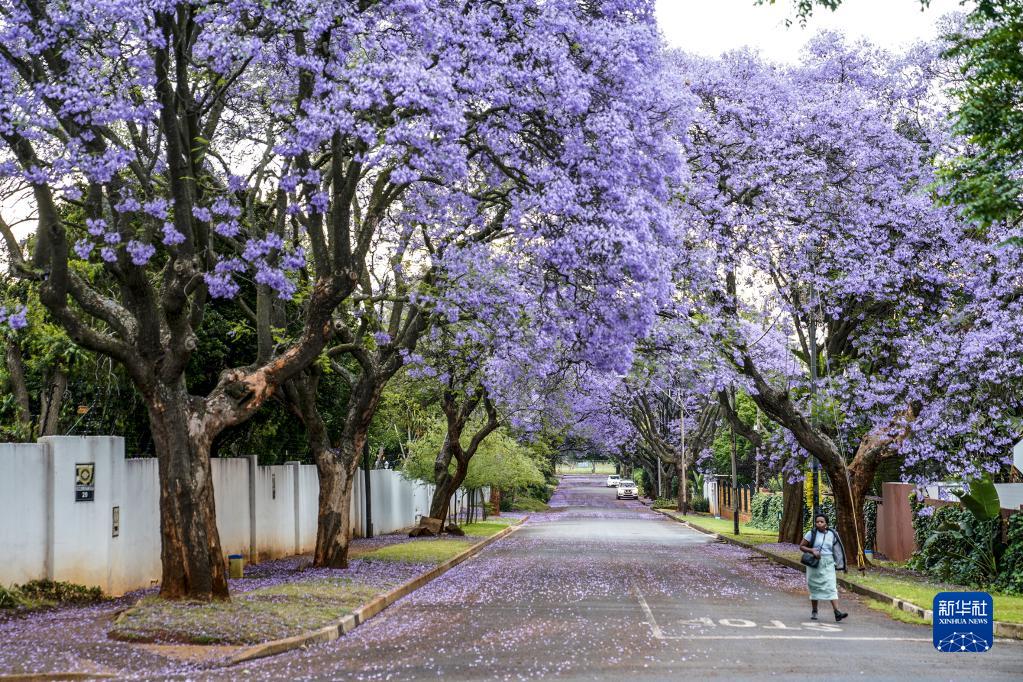 這是10月24日在南非約翰內斯堡拍攝的盛開(kāi)的藍花楹。