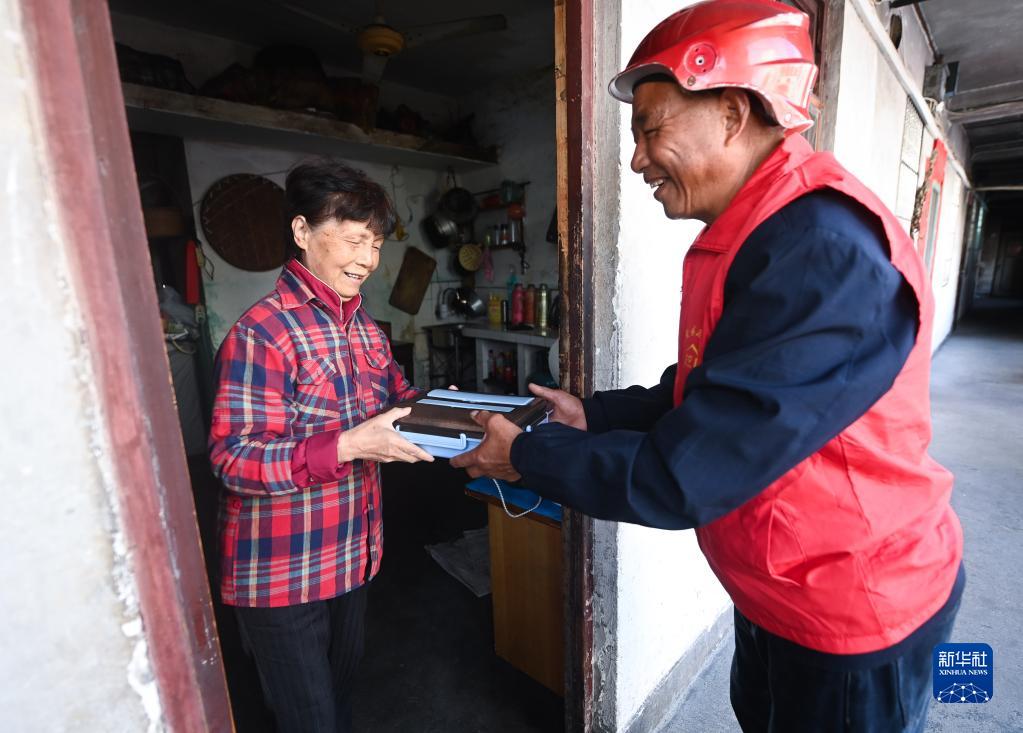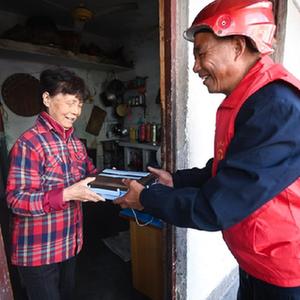 10月25日,昌化鎮居家養老服務(wù)中心的送餐員為高齡老人送餐上門(mén)。