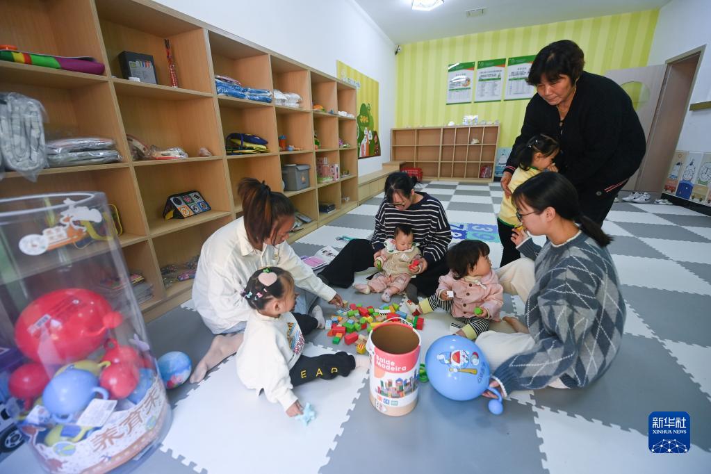 10月25日,在昌化鎮后營(yíng)村鄰里中心的嬰幼兒成長(cháng)驛站內,大人帶著(zhù)孩子在玩耍。
