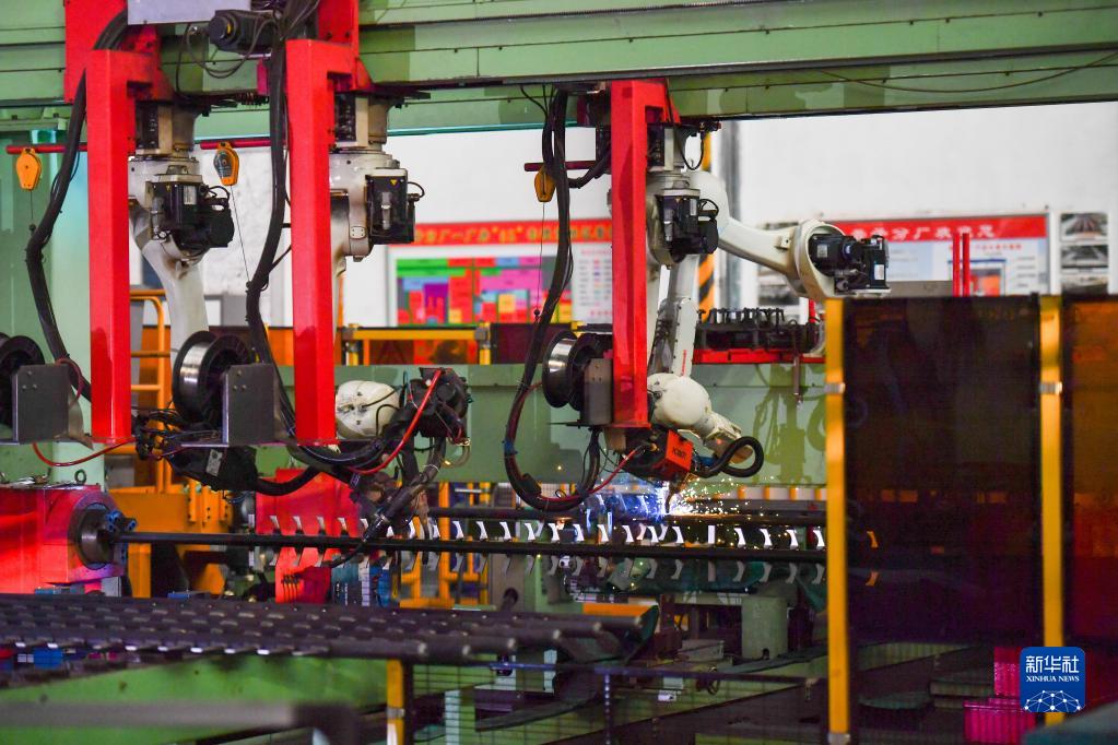 在哈電集團哈爾濱鍋爐廠(chǎng)有限責任公司的生產(chǎn)車(chē)間,工業(yè)機器人在作業(yè)(10月24日攝)。
