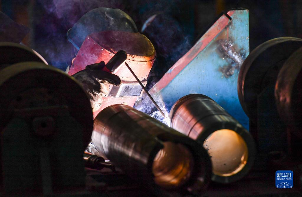 在哈電集團哈爾濱鍋爐廠(chǎng)有限責任公司的生產(chǎn)車(chē)間,工人在生產(chǎn)作業(yè)(10月24日攝)。