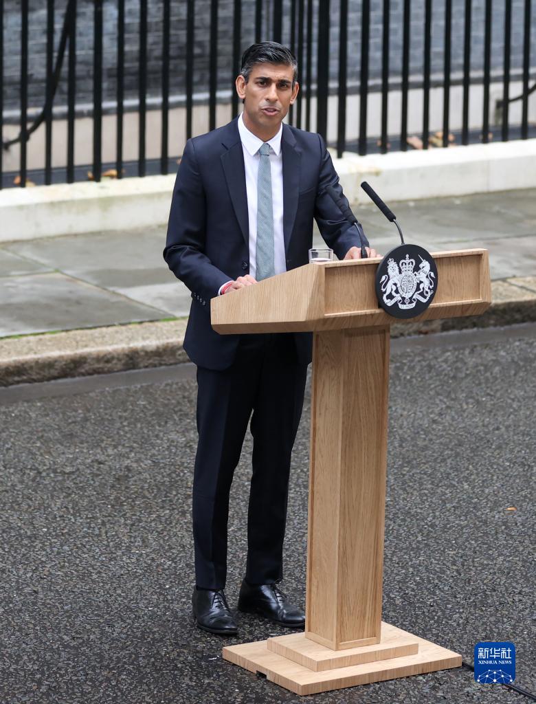 10月25日,里?!ぬK納克在英國倫敦唐寧街10號首相府前發(fā)表講話(huà)。