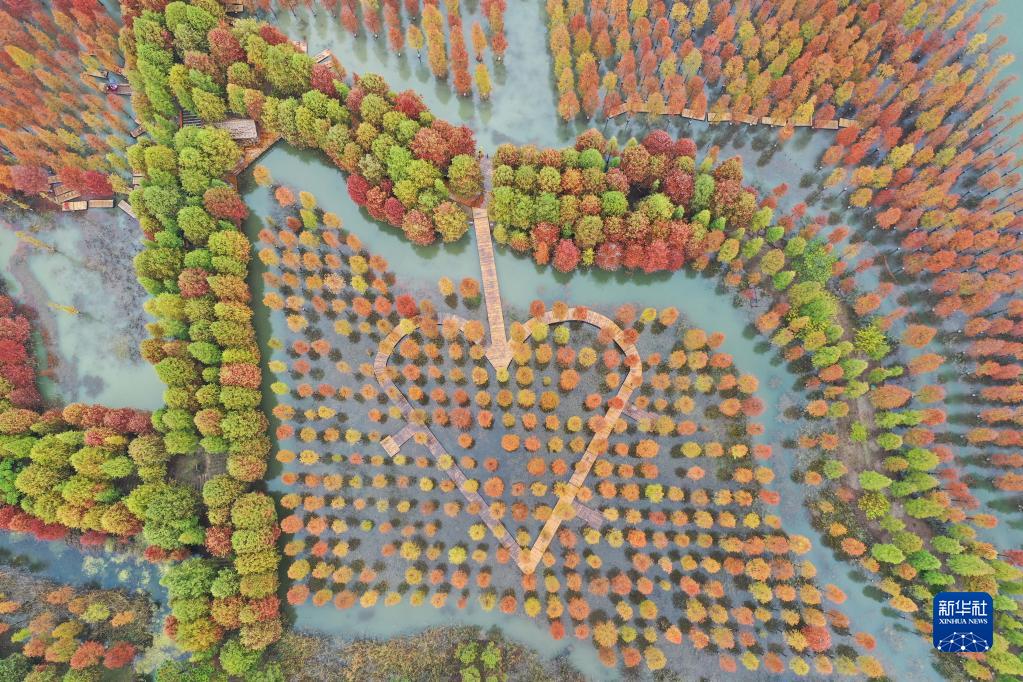 這是10月26日拍攝的泗洪洪澤湖濕地景區秋色(無(wú)人機照片)。
