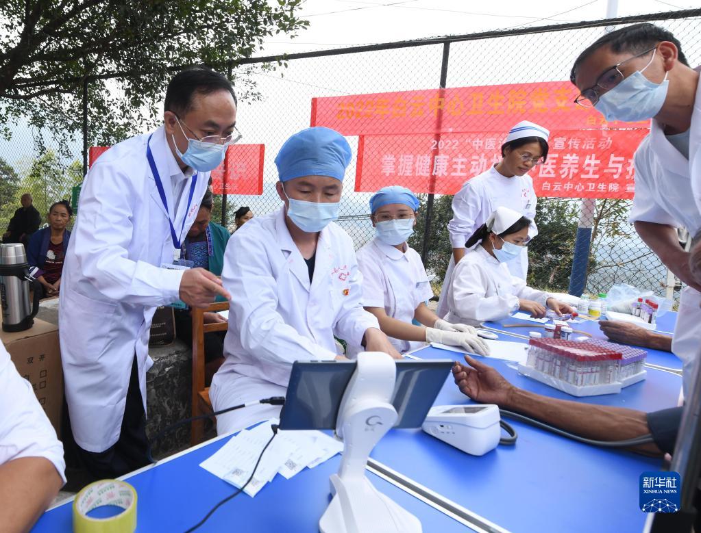 當日,廣東省湛江市醫療專(zhuān)家團隊來(lái)到廣西融水苗族自治縣白云鄉,和當地醫護人員一同開(kāi)展“送醫進(jìn)苗寨”活動(dòng),為村民提供免費診療、體檢、健康咨詢(xún)等服務(wù)。