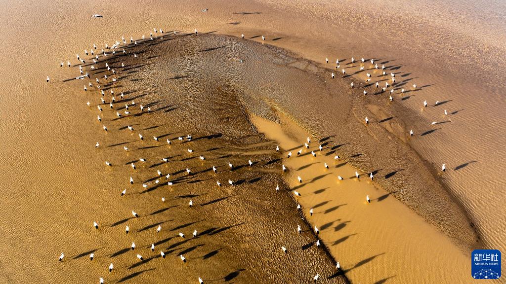 這是3月2日在山東黃河三角洲國家級自然保護區拍攝的東方白鸛(無(wú)人機照片)。