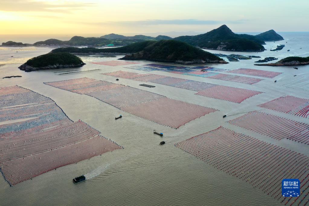 金秋時(shí)節,福建省海洋養殖大縣霞浦縣海域上一派繁忙的秋收景象。每天的早晨和傍晚是漁民出海勞作、歸港返家的繁忙時(shí)段,漁船在廣闊的海洋牧場(chǎng)里穿行游弋,收獲紫菜、生蠔等水產(chǎn)品,描繪出一幅幅美麗的大海漁耕圖。