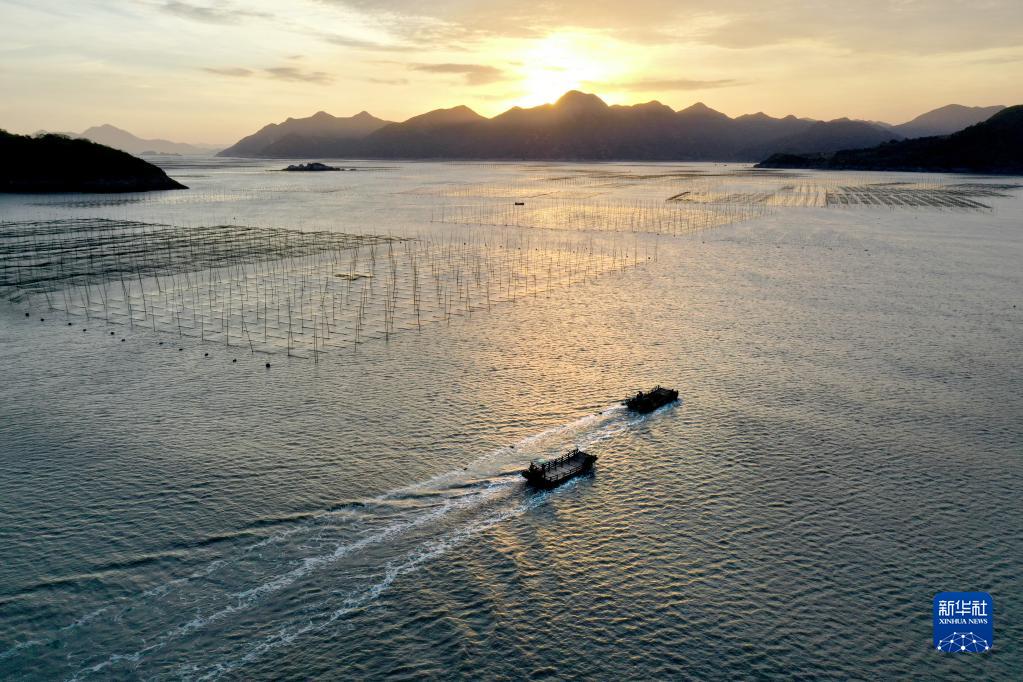 金秋時(shí)節,福建省海洋養殖大縣霞浦縣海域上一派繁忙的秋收景象。每天的早晨和傍晚是漁民出海勞作、歸港返家的繁忙時(shí)段,漁船在廣闊的海洋牧場(chǎng)里穿行游弋,收獲紫菜、生蠔等水產(chǎn)品,描繪出一幅幅美麗的大海漁耕圖。