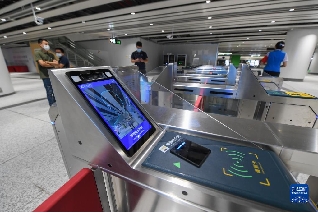 這是10月28日在深圳地鐵黃木崗樞紐拍攝的可以實(shí)現人臉識別和掌靜脈識別的閘機。