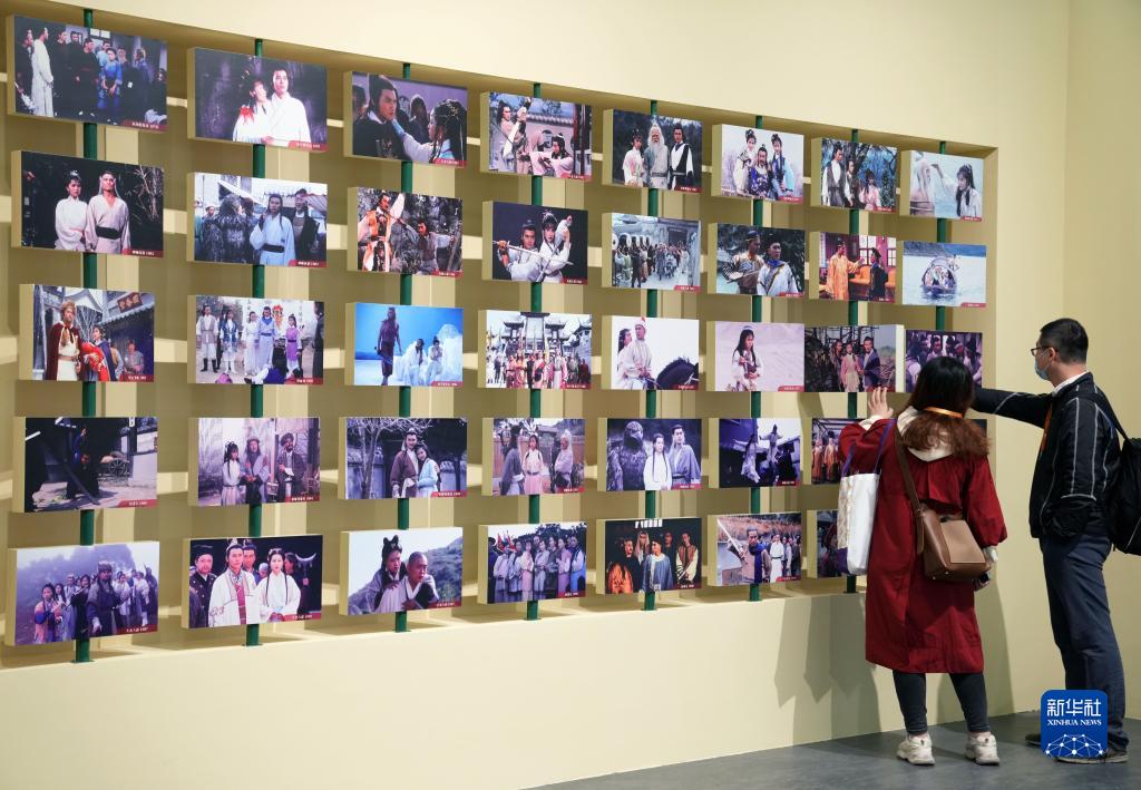 10月28日,觀(guān)眾在參觀(guān)由金庸武俠小說(shuō)改編的影視劇劇照。