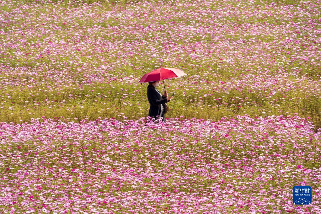 近日,韓國高陽(yáng)市迎來(lái)賞花季,花田里盛開(kāi)的大波斯菊吸引眾多游客前來(lái)觀(guān)看。