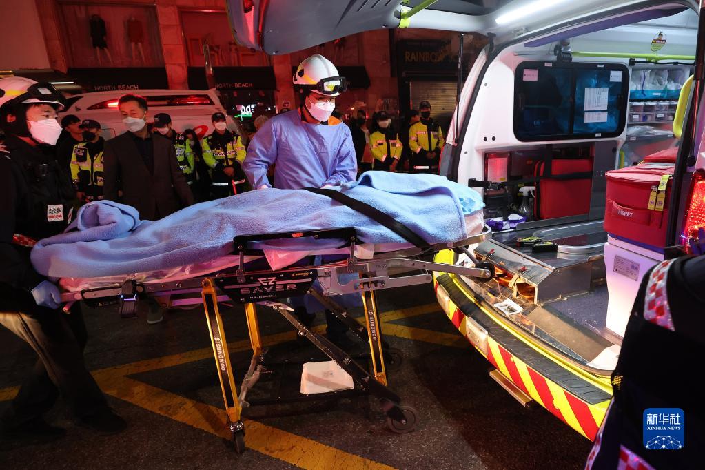 10月30日凌晨,在韓國首爾市龍山區梨泰院洞一帶,救護人員在現場(chǎng)工作。