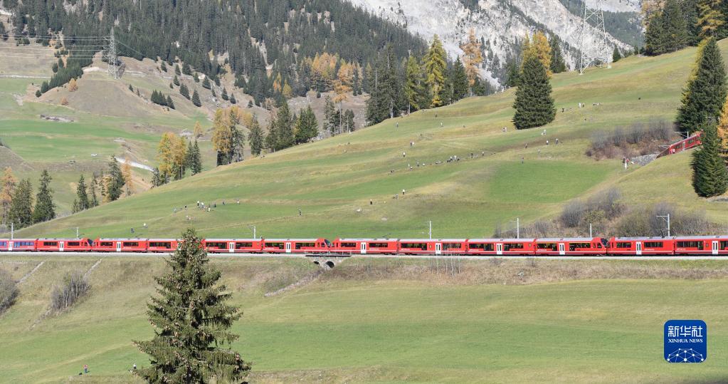 10月29日,世界最長(cháng)窄軌客運列車(chē)在位于瑞士阿爾卑斯山區的雷蒂亞鐵路網(wǎng)上行駛。
