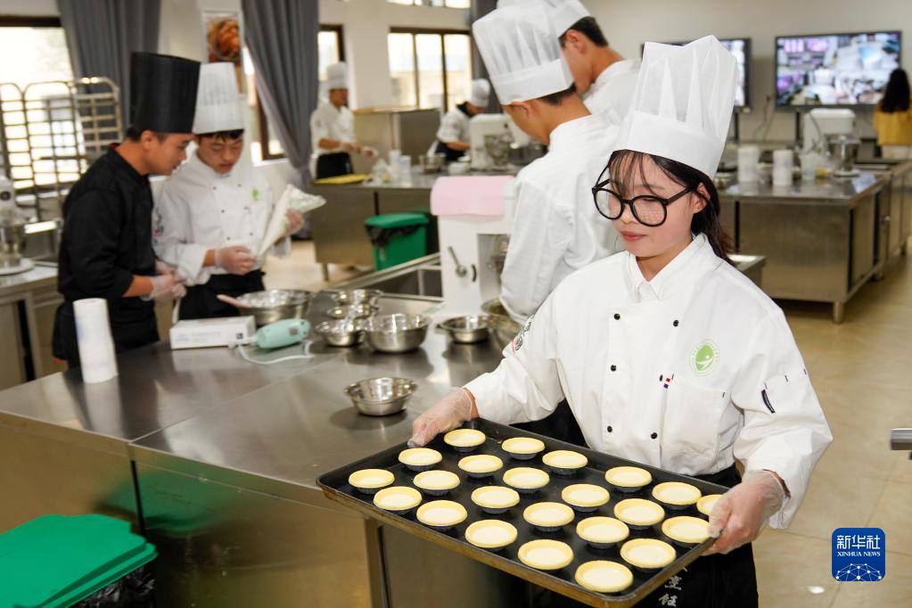 10月27日,重慶市黔江區民族職業(yè)教育中心的學(xué)生在烘焙實(shí)訓課上練習制作西式糕點(diǎn)。