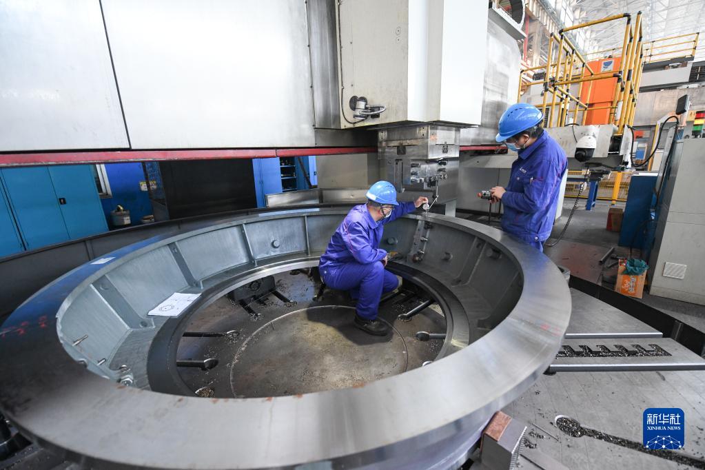 10月30日,在哈電集團哈爾濱電機廠(chǎng)有限責任公司的生產(chǎn)車(chē)間,工人在進(jìn)行生產(chǎn)作業(yè)。