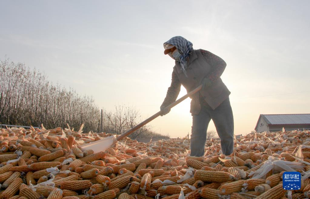 10月29日,在內蒙古通遼市科爾沁左翼中旗花吐古拉鎮三家子村,一位村民晾曬玉米。