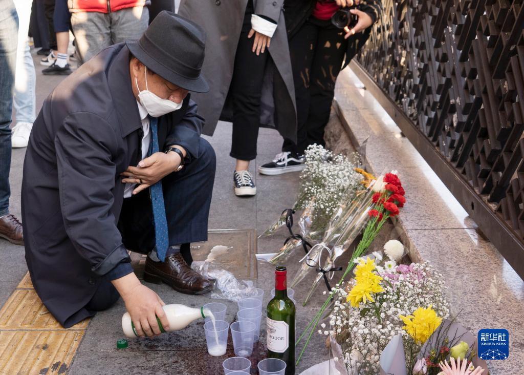 10月30日,民眾在韓國首爾市龍山區梨泰院洞一帶悼念踩踏事故遇難者。