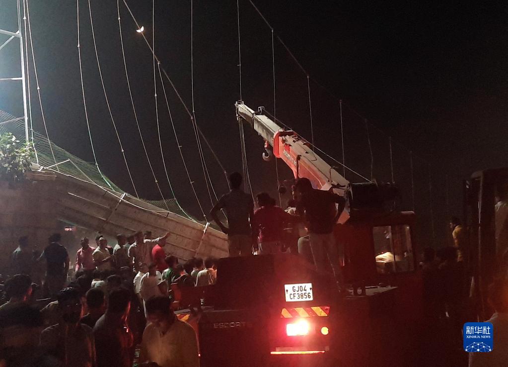 印度西部古吉拉特邦一座拉索橋30日突然斷裂,目前已造成60人死亡。