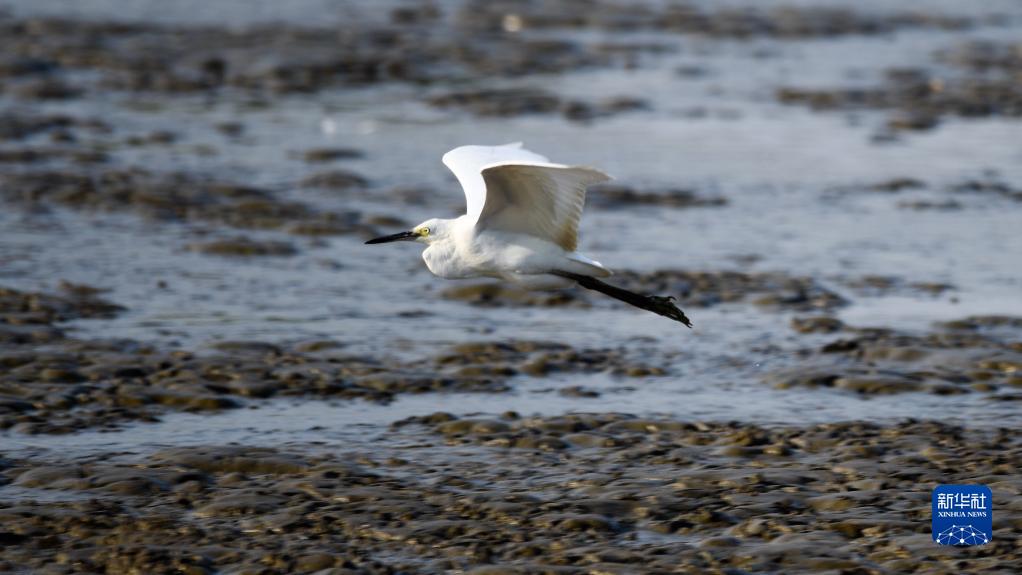一只鳥(niǎo)在廣西山口紅樹(shù)林生態(tài)國家級自然保護區飛行(10月23日攝)。