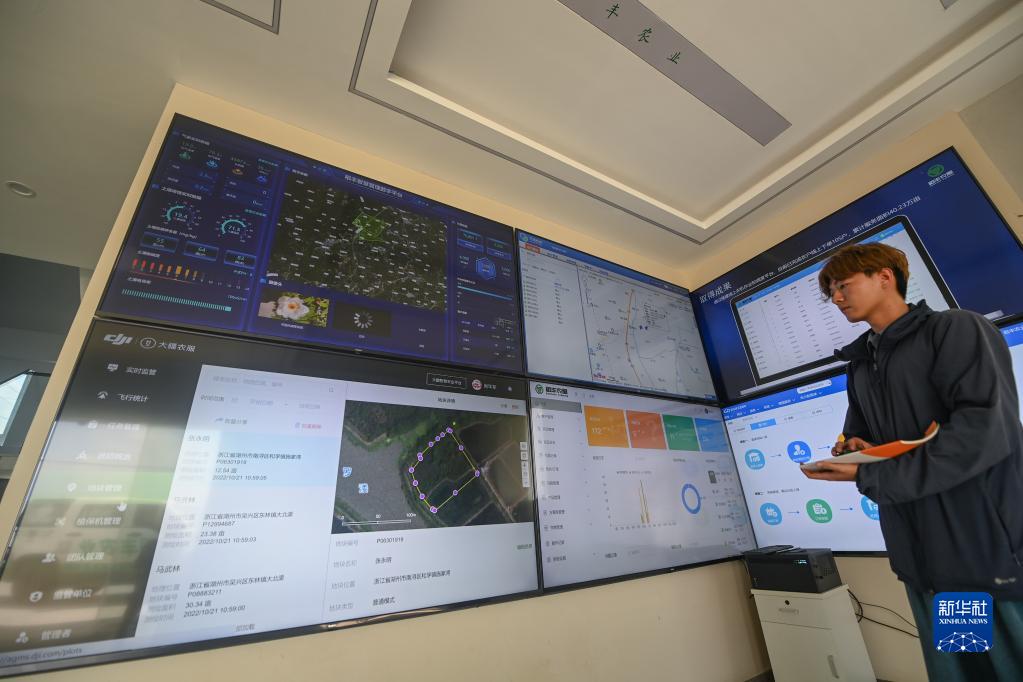 11月1日,在浙江省湖州市吳興區東林鎮一家農業(yè)企業(yè)的數字化系統后臺,工作人員查看農機運行數據。