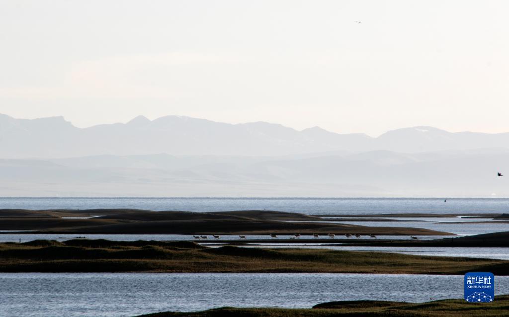 一群普氏原羚在青海湖濕地活動(dòng)(2020年5月17日攝) 。