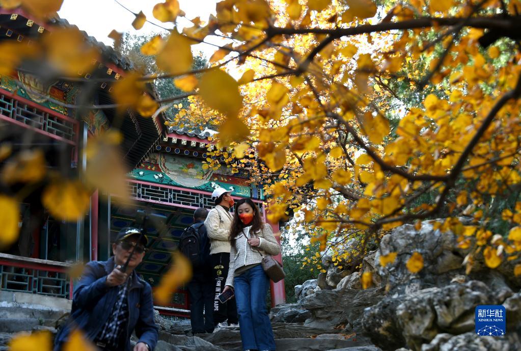 11月1日,游客在北京北海公園賞景游玩。