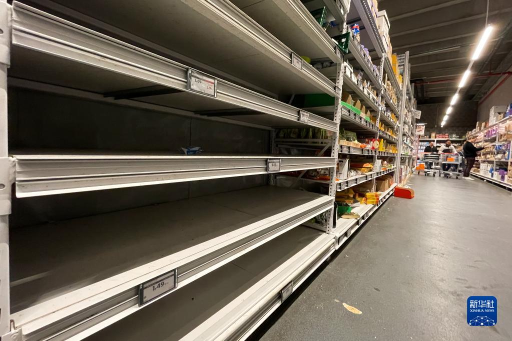 10月31日,比利時(shí)布魯塞爾一家超市售賣(mài)平價(jià)雞蛋的貨架空空如也。